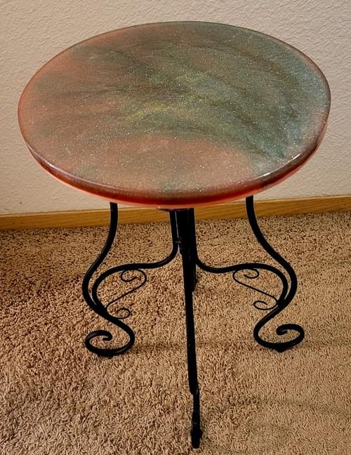 Elevate your modern aesthetic with our Earthy, Colorful, Patterns table. Each table features clean lines and bold shapes, with a top-coat seal ensuring your surfaces stay stylish and protected. A must-have for contemporary homes. - Legs are 22 inch tall for 14 inch round top and 24 inches tall for 19 in round table top. (choose from many different table top styles)